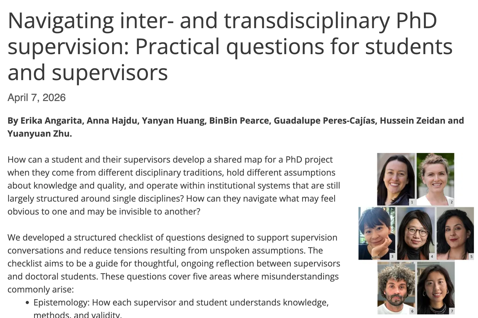 A practical guide of questions for students and supervisors navigating inter- and transdisciplinary PhD supervision. Published on the i2Insights blog (Integration and Implementation Sciences).